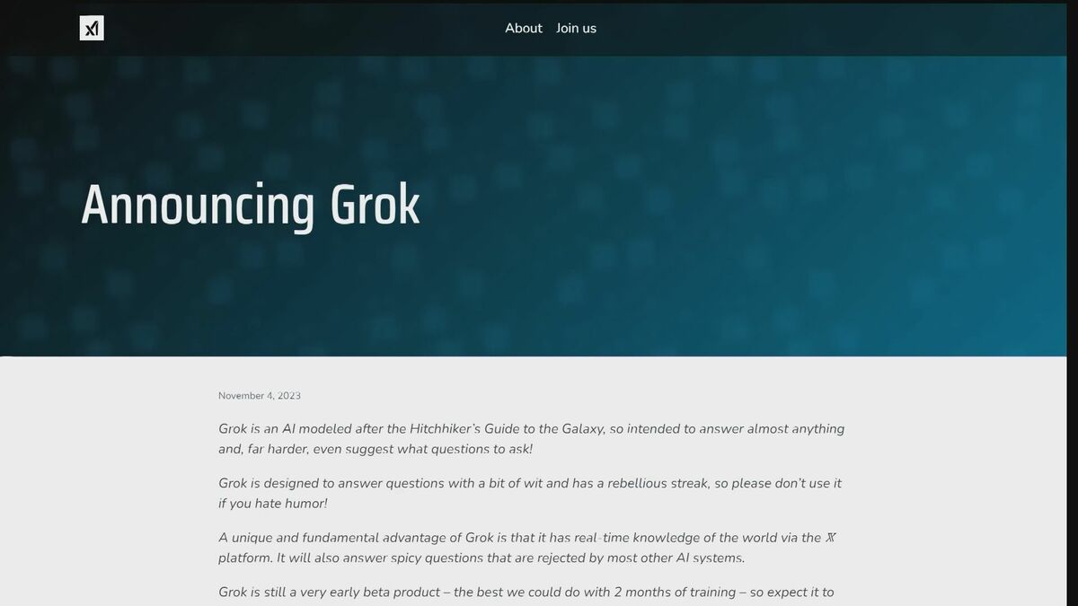 イーロン・マスクが率いるアメリカのAI企業xAIがAIチャットボット「Grok」を発表しました。